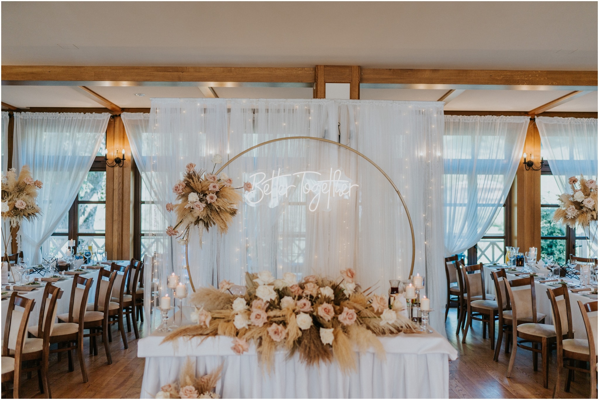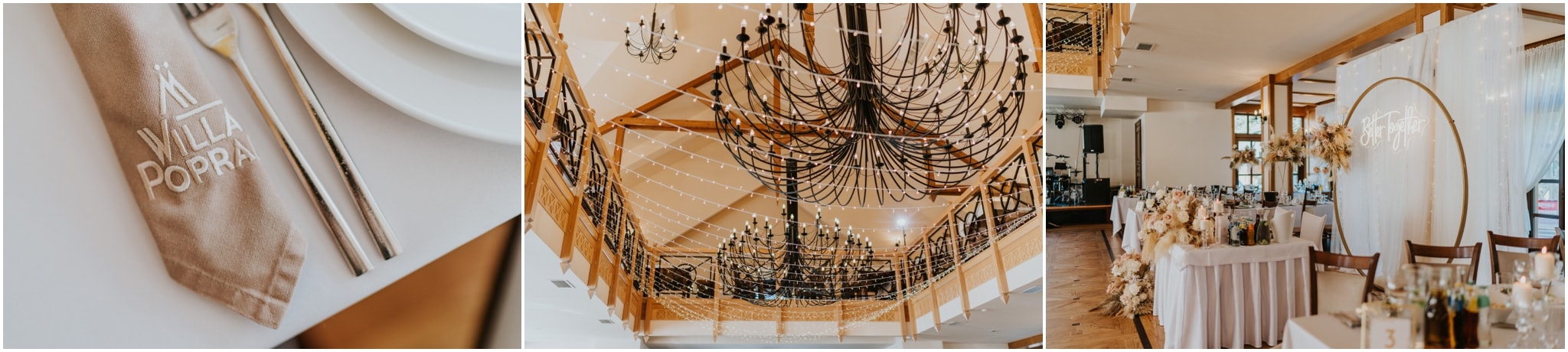 Willa Poprad zasługuje na ozdobę każdego ślubu. Wyrożniają ją dekoracje z ręcznie zdobionego drewna, efektowne żyrandole i urzekająca scena, tworząca idealne tło dla muzyki na żywo – zarówno dla zespołu muzycznego, jak i DJ’a. Zachwycają zarówno miłośnicy wesel w stylu rustykalnym, jak i fani wyrafinowanego glamour – potencjał aranżacyjny Willi Poprad jest nieograniczony.